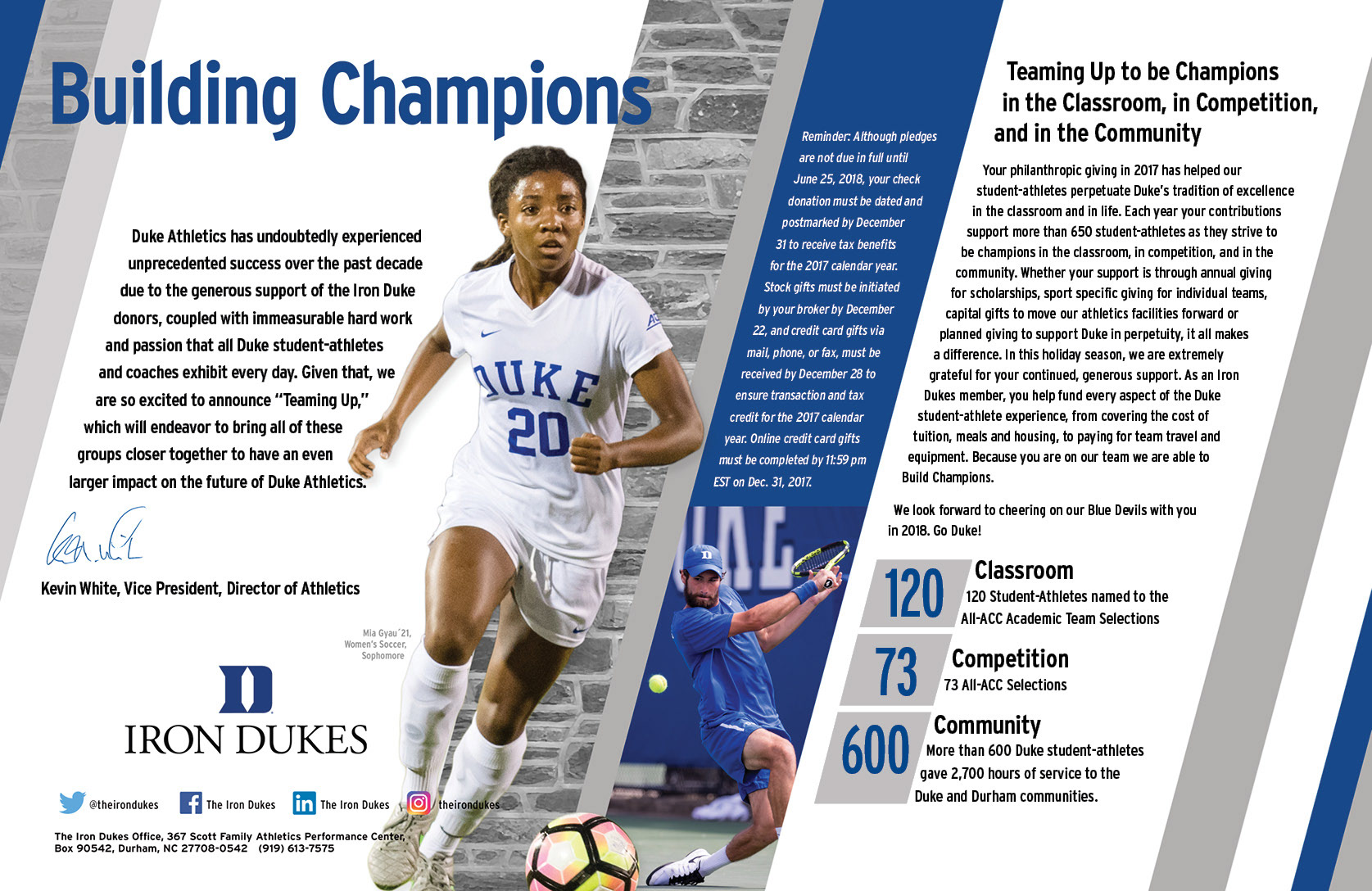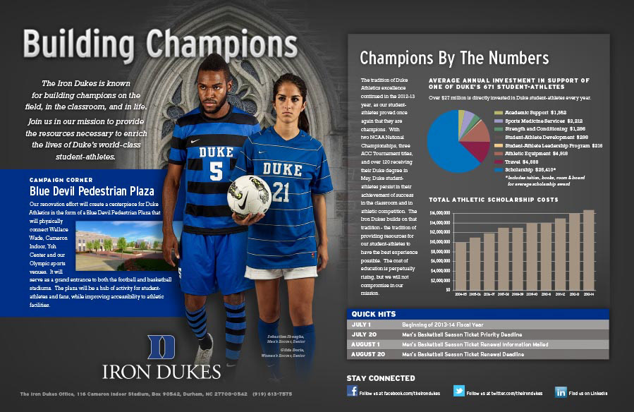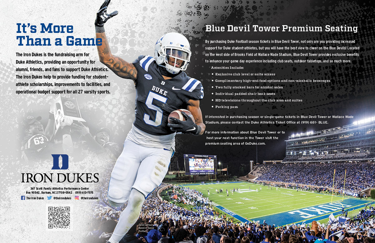 Monthly Iron Dukes spread for Go Duke Magazine